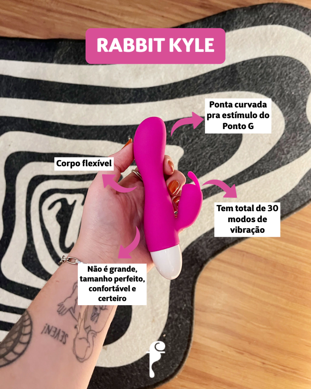 Rabbit Kyle é um dos meus toys favoritos, pois ele é potente, confortável por não ser grande, sua ponta curvada estimula bem certinho no ponto G e as orelhinhas estimilam ao mesmo tempo o clitóris! Kyle é um dos toys mais vendidos aqui da Fava, e não é à toa!